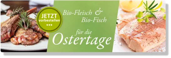 Bitte vorbestellen für die Aktionswoche vom 30. März bis 5. April. Bestellen Sie bis zum 17. März, 10 Uhr, per Telefon, Fax, E-Mail oder nutzen Sie, unseren Internetshop unter: „Fleisch, Fisch und Vegan zu Ostern“. PDF download