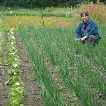 Annette Maaß ist seit 27 Jahren Gärtnerin und arbeitet seit 25 Jahren in Samenbau und Züchtung von Gemüsesorten, sie war 1996 Mitgründerin der Gärtnerei Kronacker und ist nun nach 10 Jahren wieder am Kronacker![]()