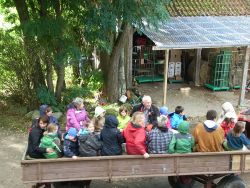 Mit dem Schlepper und einem vollbesetzten Anhänger sind wir am Samstag zur Herbsternte zum Buhlenbrock gefahren.