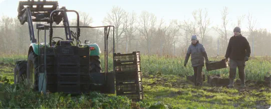 Mitarbeiter der Gärtnerei bei der Ernte am frühen Morgen